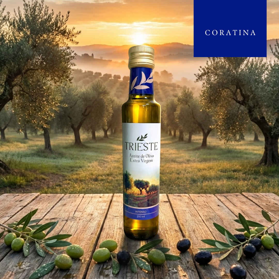 De origem italiana, a azeitona coratina produz um azeite frutado verde, aroma de intensidade alta, com amargo e picante muito pronunciados e persistentes. Sabor herbáceo, trazendo banana verde, alcachofra e folhas amargas como rúcula.