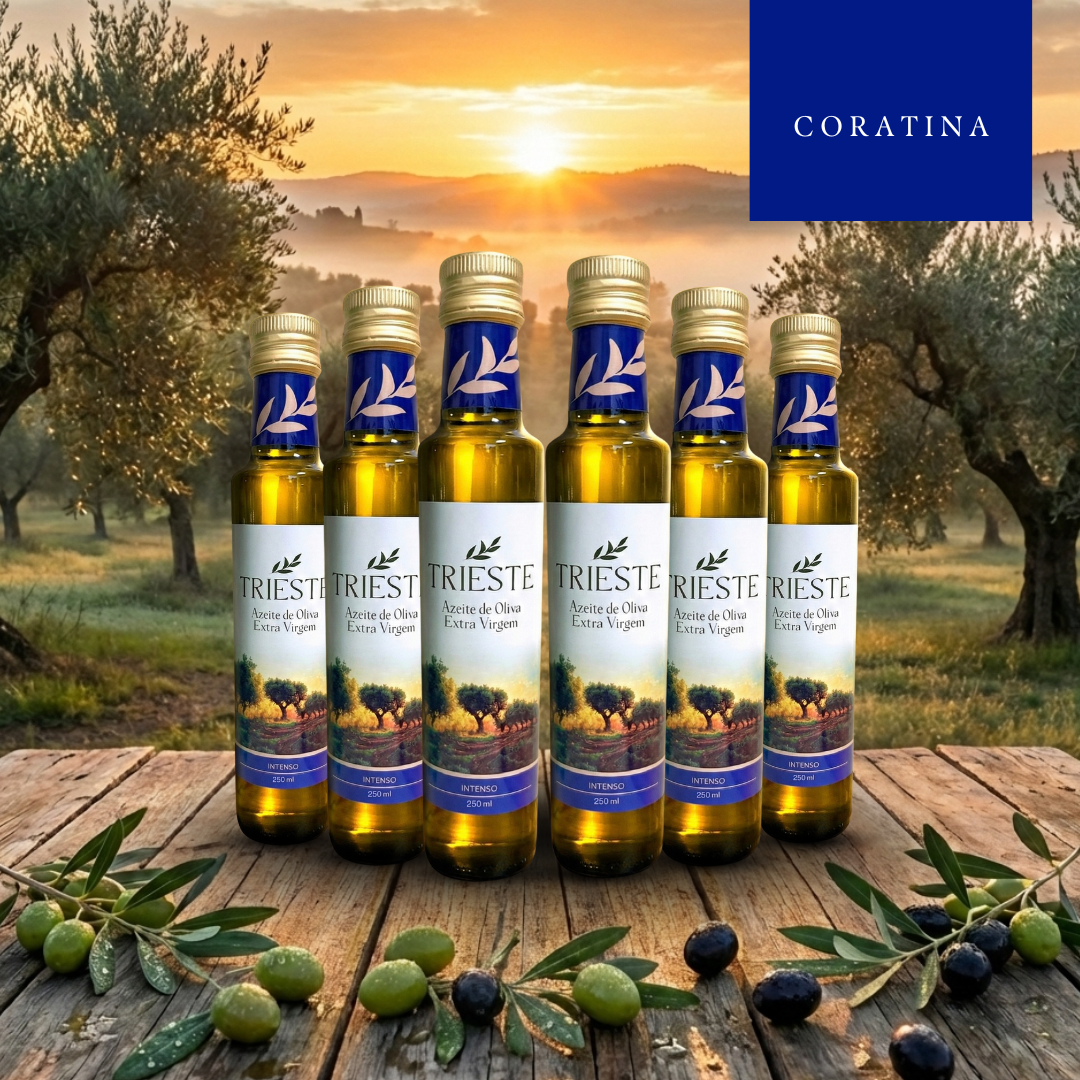 De origem italiana, a azeitona coratina produz um azeite frutado verde, aroma de intensidade alta, com amargo e picante muito pronunciados e persistentes. Sabor herbáceo, trazendo banana verde, alcachofra e folhas amargas como rúcula.